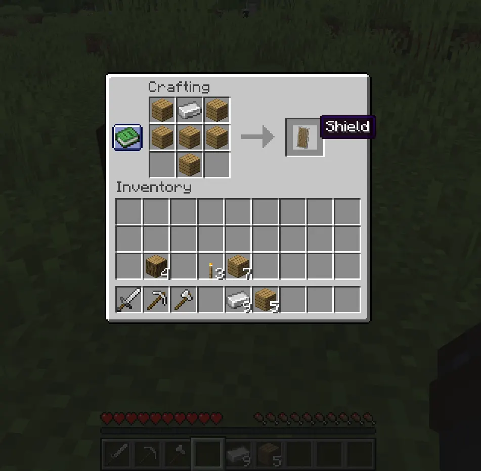 The shield is especially important because it blocks skeleton arrows and many mob attacks.