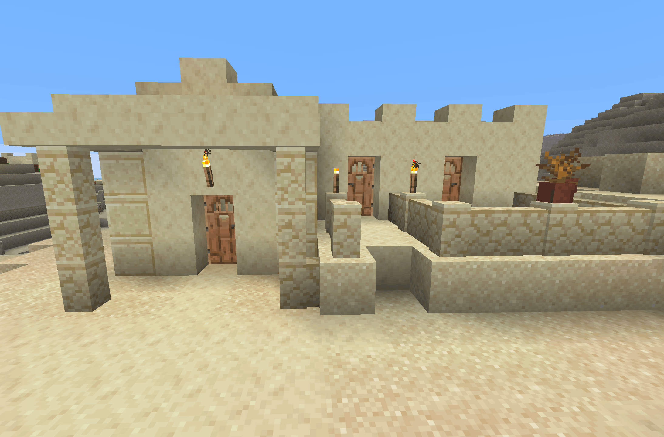 Desert Villages are one of the biggest advantages of living in a desert biome. These villages use sandstone instead of wood and often generate with wells, farms, and multiple villagers.