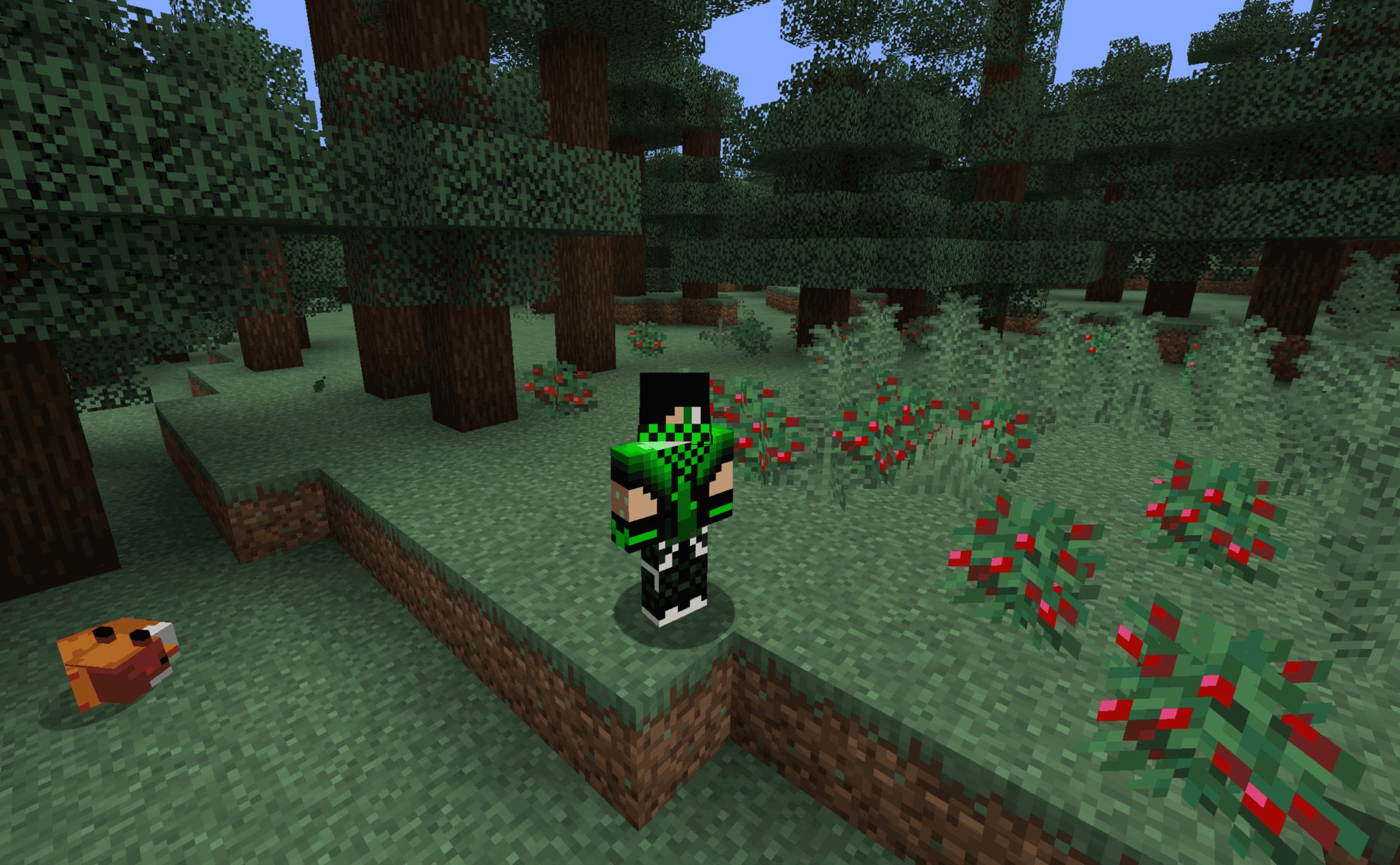 The Taiga biome is a cold Forest Biome filled with tall spruce trees and dark green terrain. It feels thicker and more wild compared to Plains or normal Forest biomes.