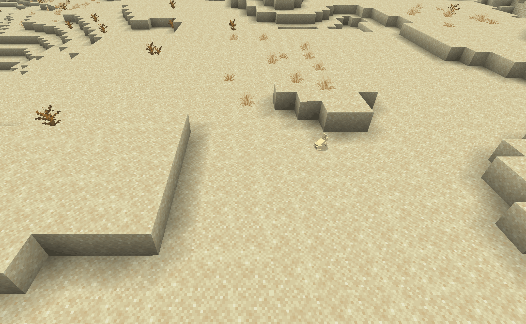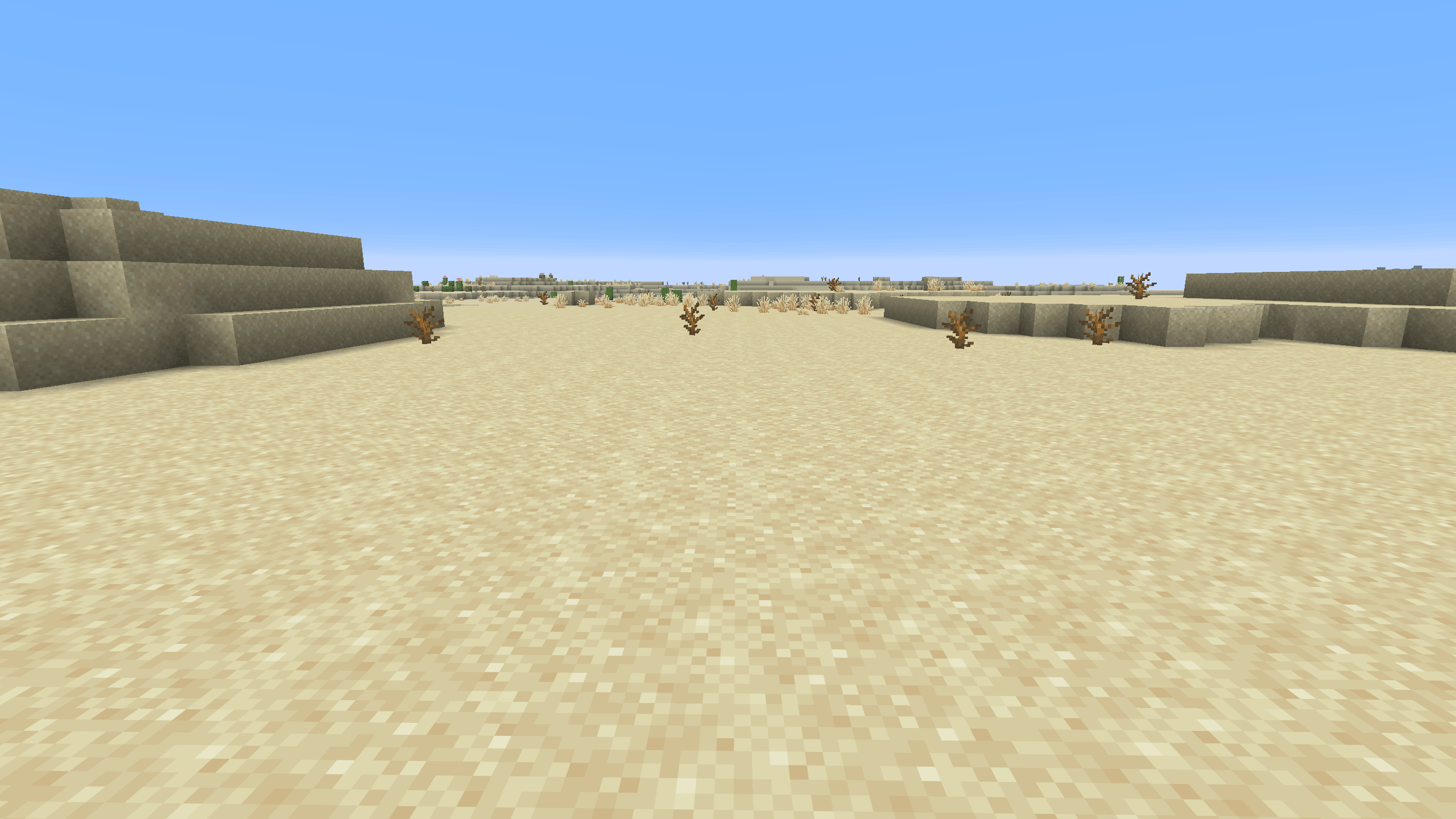 The Desert biome is instantly recognizable. Endless sand, sandstone structures, bright lighting, and little natural cover define the environment.
