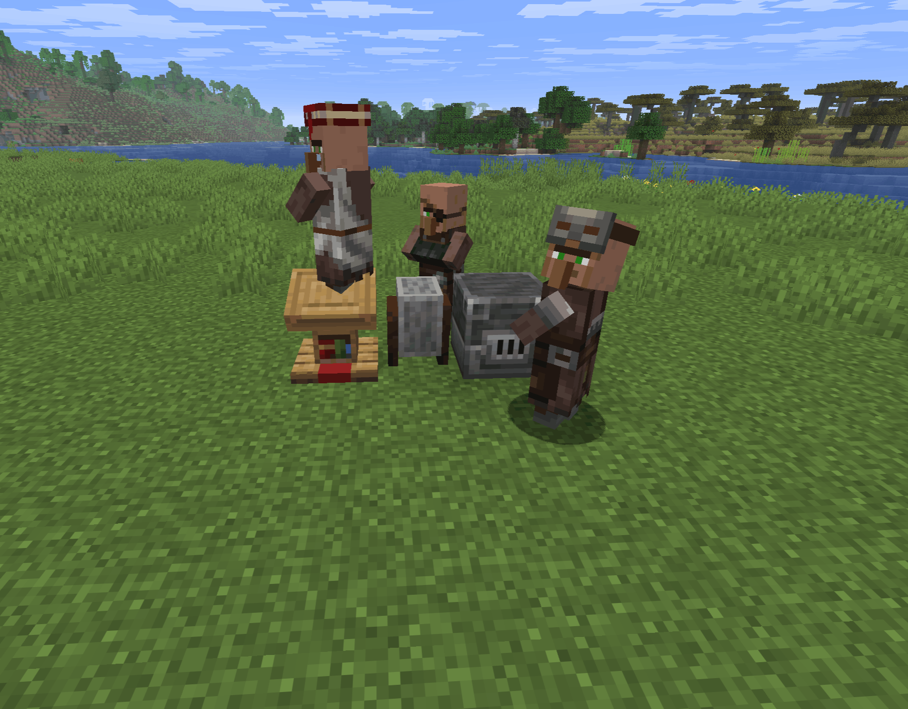 Each profession is tied to a workstation block found inside the village.