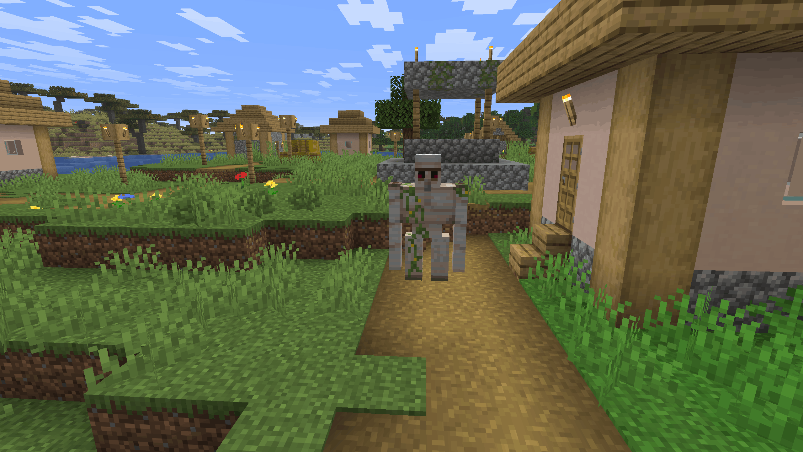 Plains villages often spawn with one or more Iron Golems.