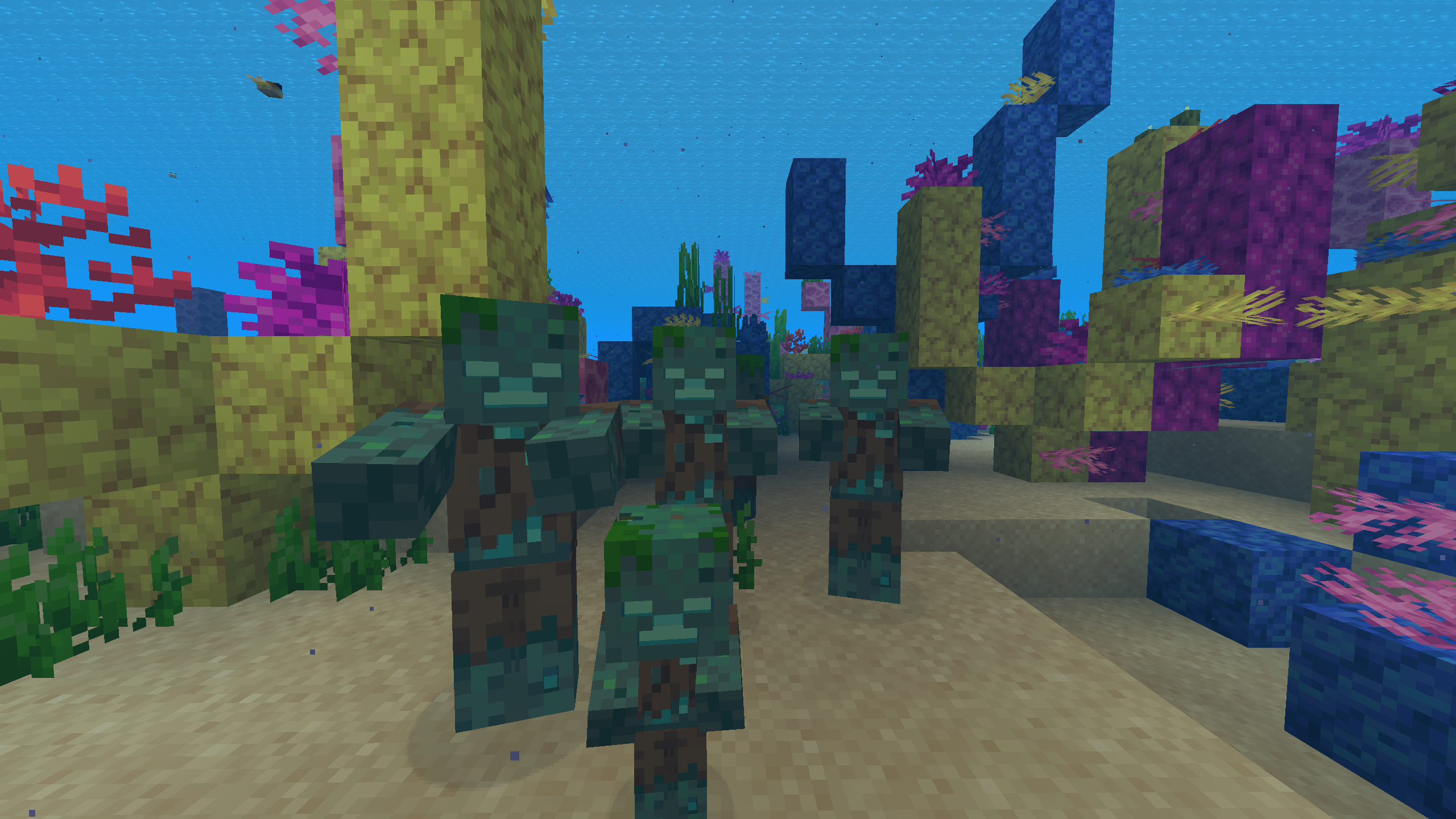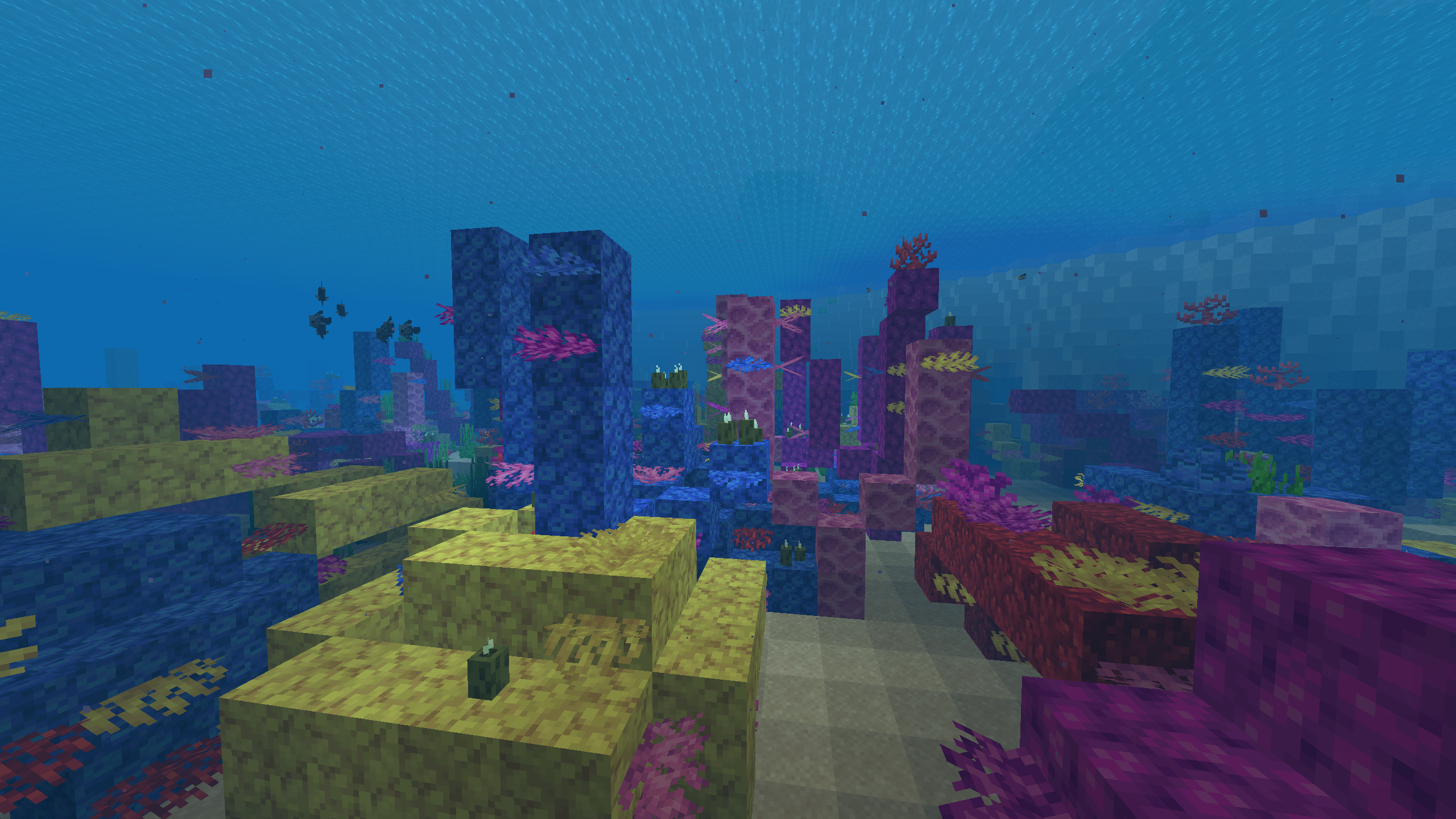 You’ll commonly find coral reefs, sea pickles, seagrass, and a wide variety of tropical fish swimming around. These features make the biome ideal for exploration and underwater projects.