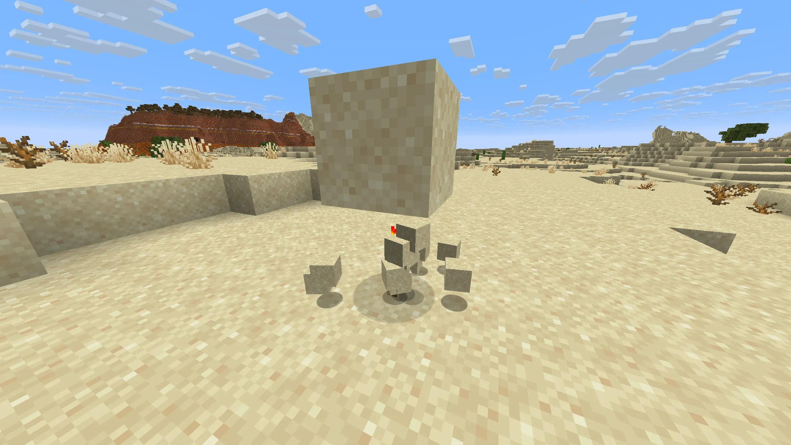 Wood is rare in deserts, so sandstone becomes your best building material. You can craft sandstone using sand blocks, which are everywhere.