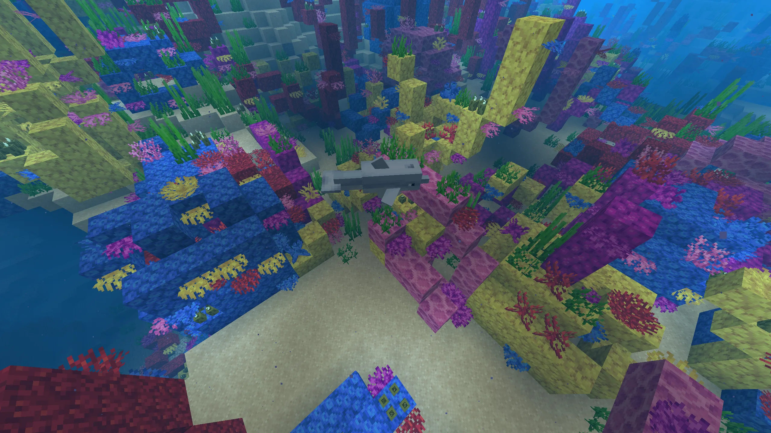 Because of the clear water and colorful surroundings, many players choose this biome for aesthetic builds rather than survival-focused bases.